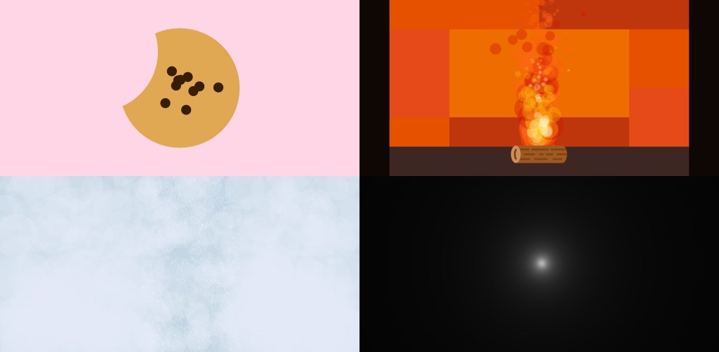 Burning Love: a fireplace simulation game that allows the player to add wood and feel the warmth visually and acoustically.